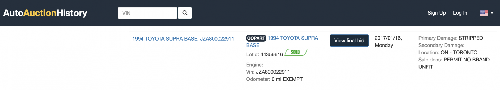 Registry / MK IV / JZA80-0022911
